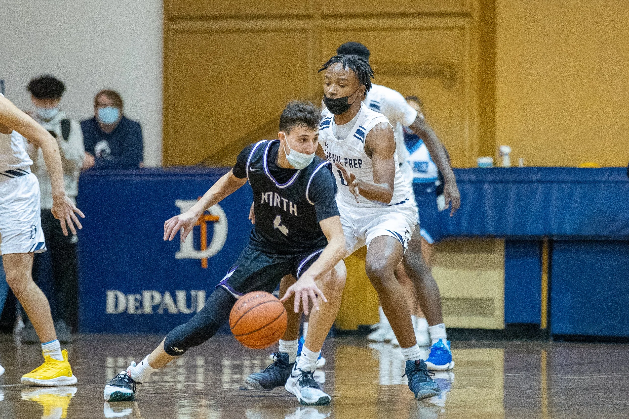 In DePaul Prep’s third game of the Battle of the Bridge Thanksgiving Tournament on Wednesday evening (Nov 23, 2021), the Rams defeated the Niles North Vikings 62-50 at DePaul Prep’s Tom Winiecki Gym on the old Gordon Tech campus.